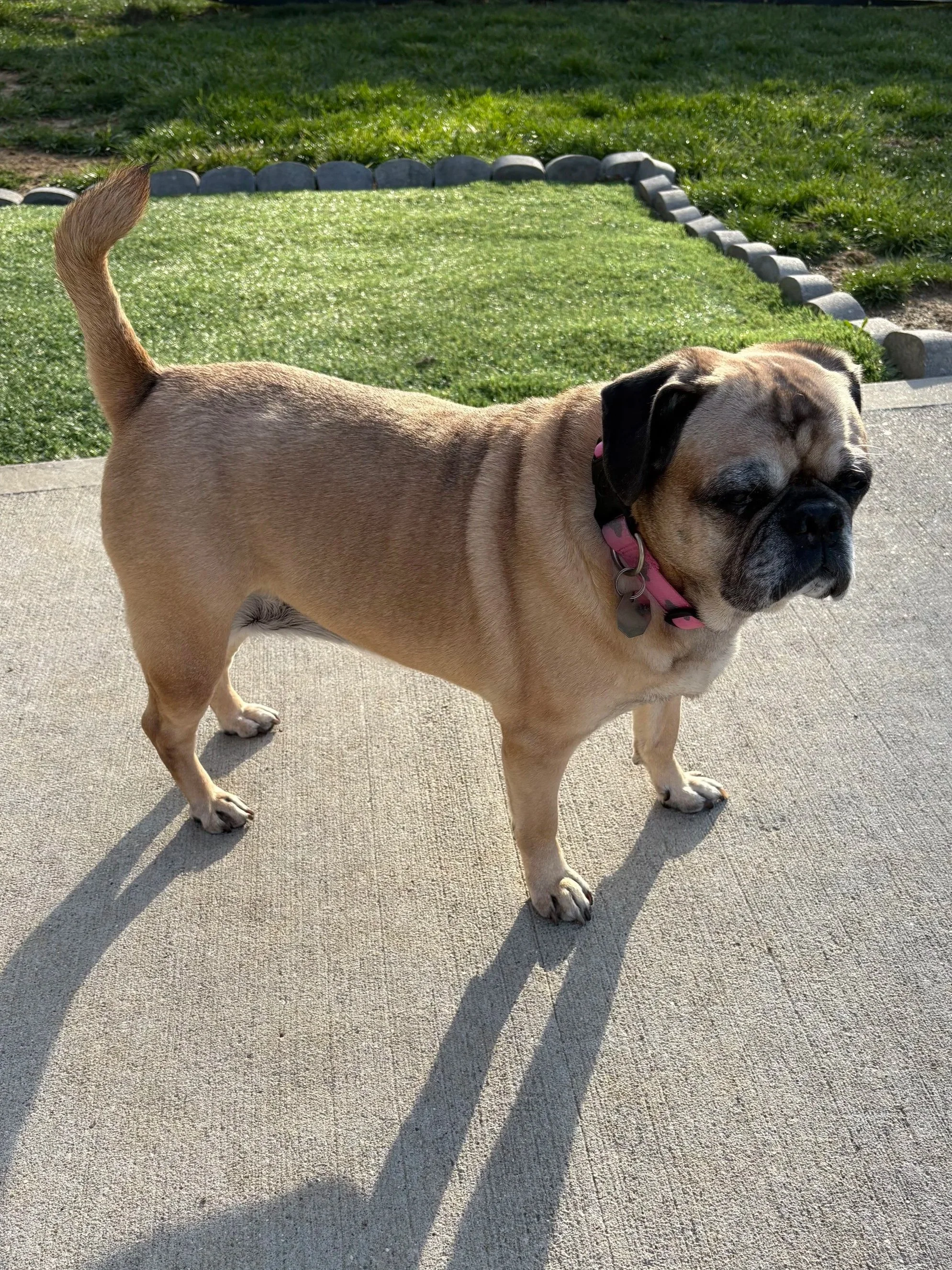 Temperament: Meet Molly #580! Molly is looking for a fresh start. Her owner could no longer care for her, so they made the difficult decision to surrender her, and we are happy to offer her a loving second chance. Molly is an 11 year old Puggle who is sweet as can be. She likes belly rubs before getting up in the morning and loves to play tug-of-war. She will grab a toy as soon as she sees her human stand up because she is ready to play. Molly gets along with other humans and dogs, like to take walks and be outside, and she is a quick learner. Molly even knows to bring her toys back inside when she is asked! Could Molly be the perfect fit for your family? Be sure to mention her name in your application.